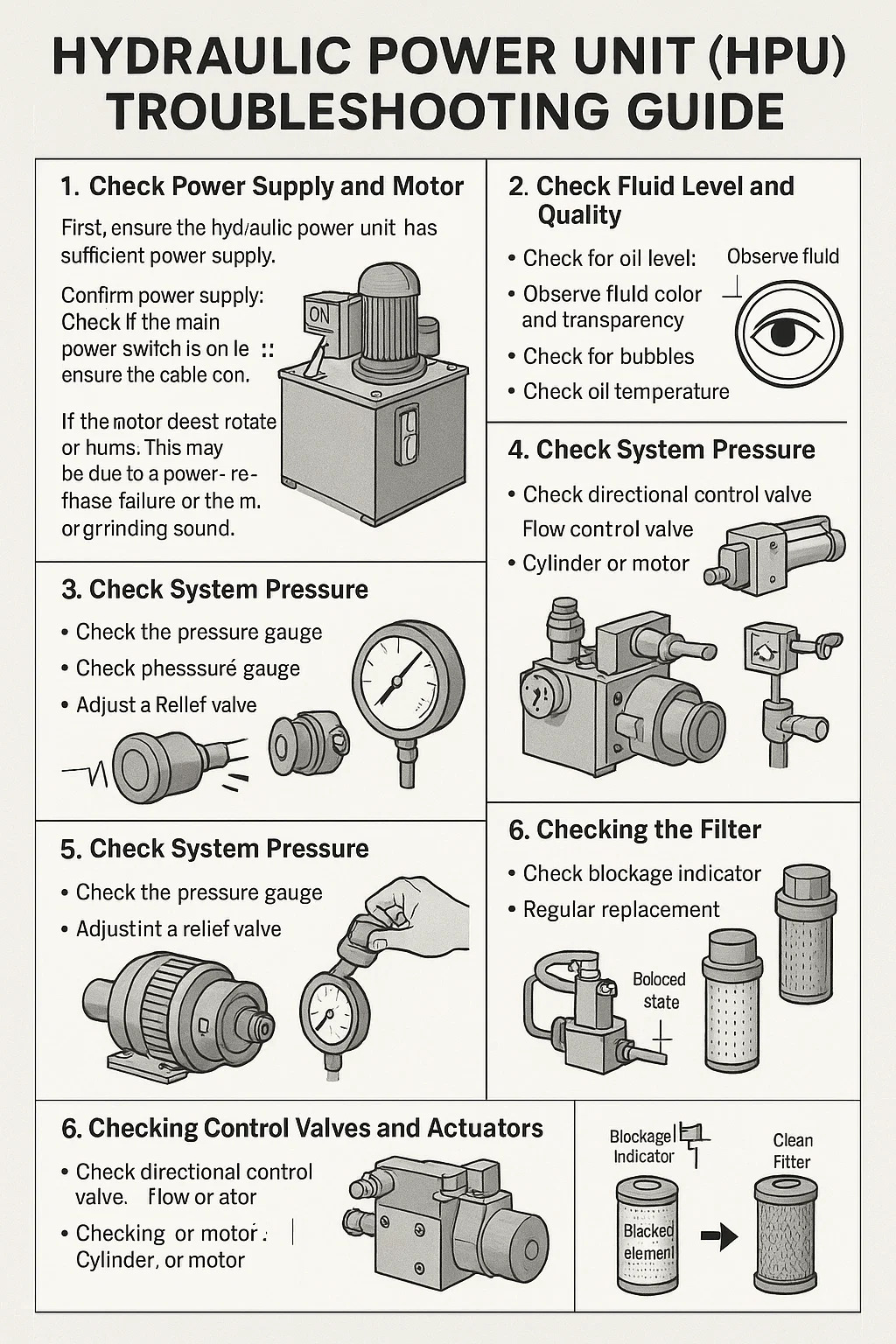 First, ensure the hydraulic power unit has sufficient power supply and can start normally.
